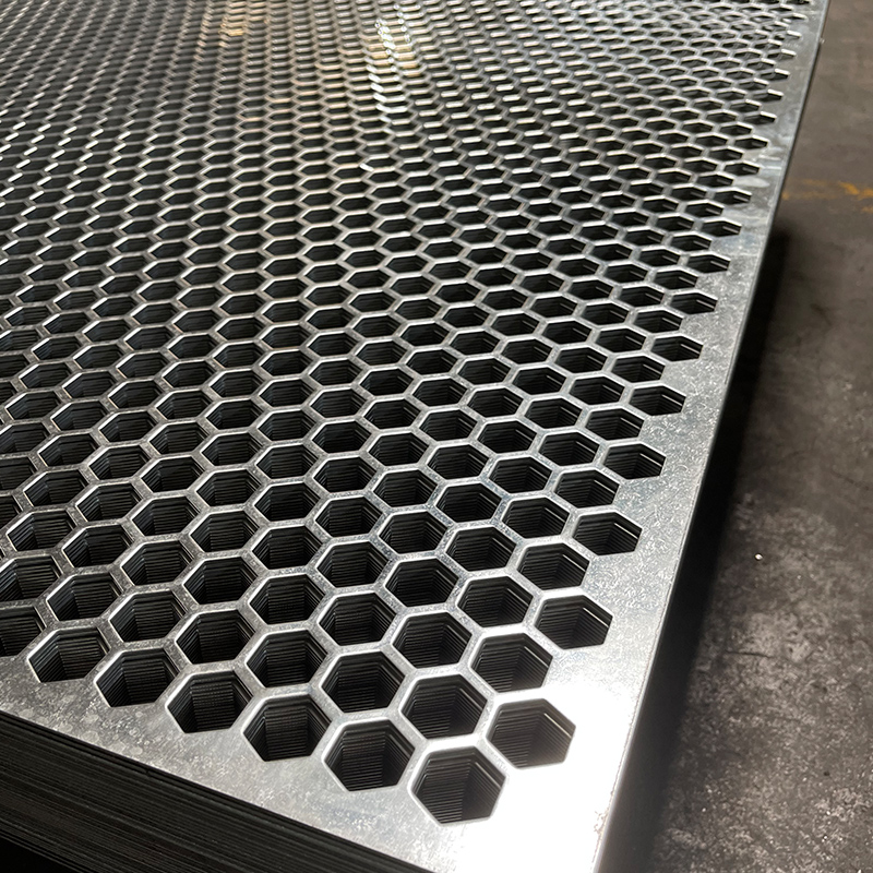 六角沖孔網是用六角模具在數控沖床上連續沖壓而成的網狀制品。 產品精度達到+/-0.15MM,可沖0.8-10mm范圍內的板材。 由于鋁板本身重量很輕,而且網孔均勻,鋁板不易腐蝕,所以也是板材沖孔的不錯選擇。
